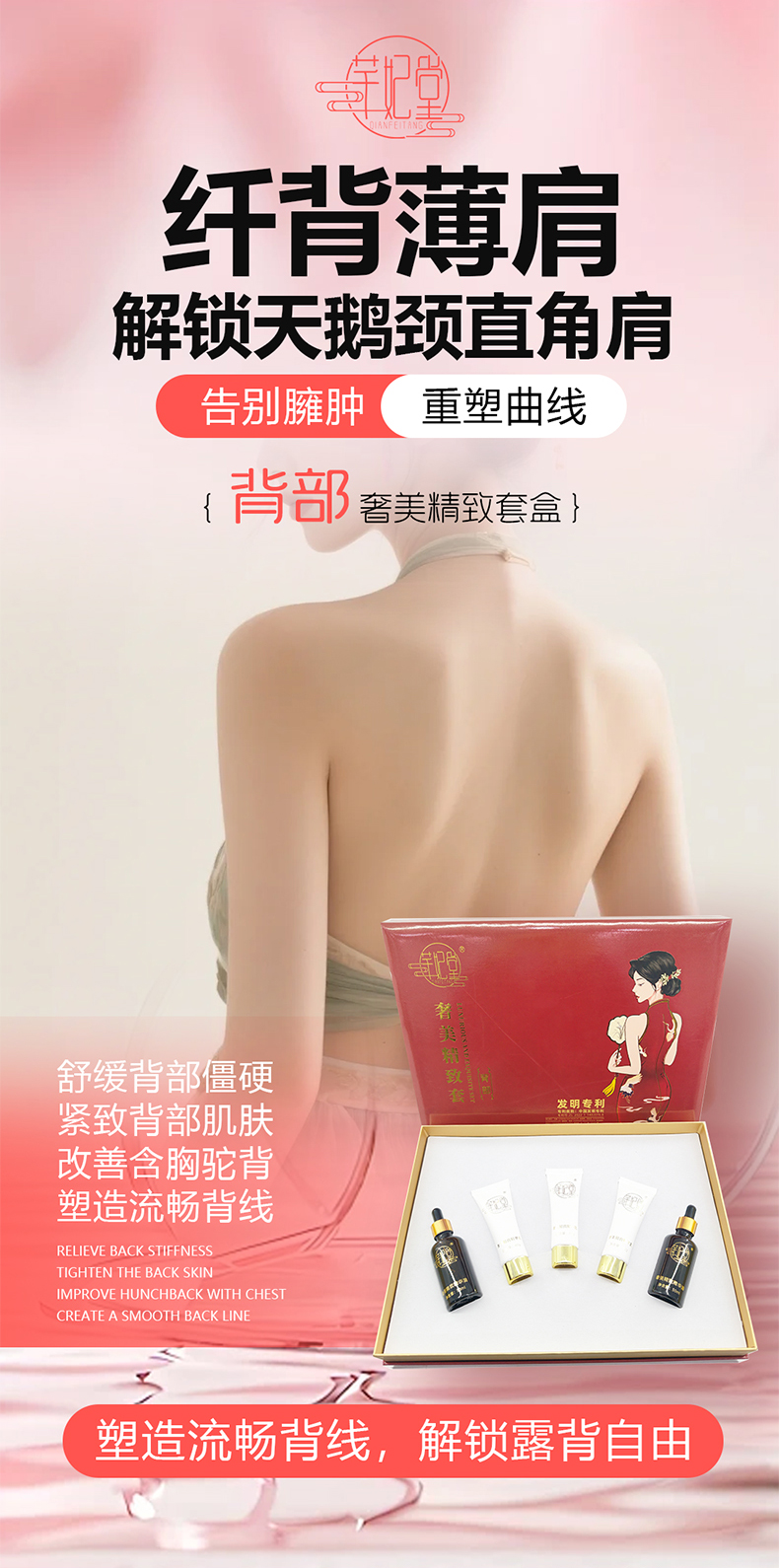舒缓背部僵硬,紧致背部肌肤,改善含胸驼背,塑造流畅背线。